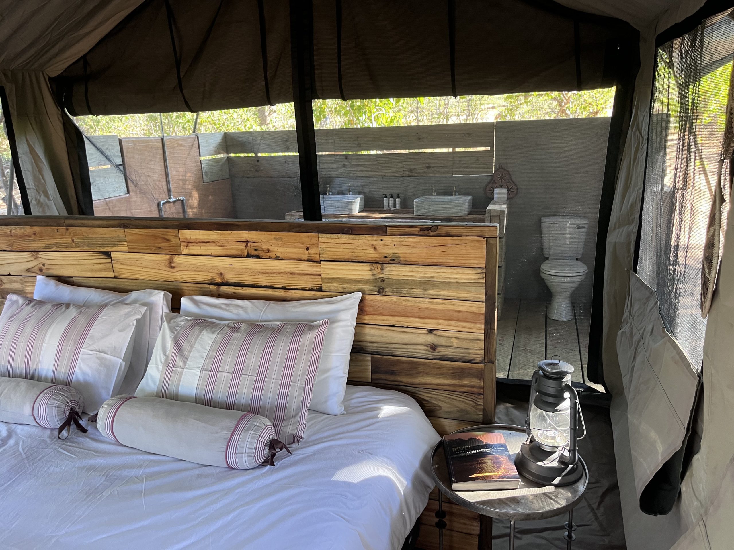 Harena, what means “our place” in the local dialect, comprises of an affordable tented camp on a unique location on the Limpopo River. Both catered with simple meals as well as for the self-catering guests it offers a unique opportunity to explore the Tuli in an affordable yet very comfortable way. The 4 tents comprise of a large ‘meru type’ tent overlooking the river, with a bathroom en-suite and are perched under the most magnificent ancient Nyla Berry trees, thus providing you with cooling shade. The Meru Style tents have a king bed and an ensuite bathroom with a shower only with bathroom amenities. Each tent has a private braai (BBQ) facility and looks out onto the Limpopo River.